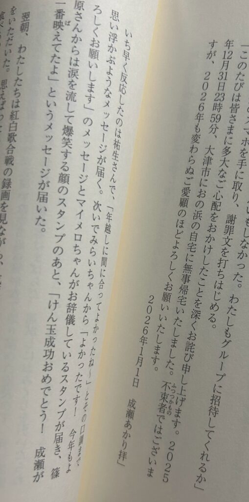 たしかに、この章も成瀬が一人暮らしするものだと勝手に勘違いして、覚悟まで決めてる笑