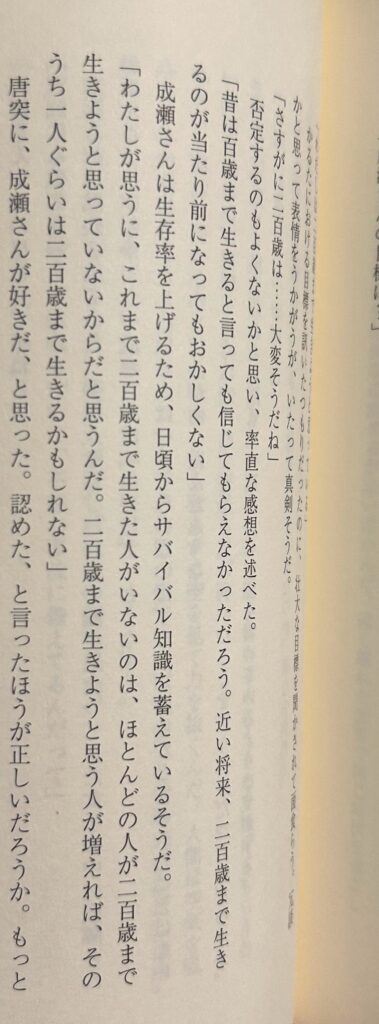 成瀬が「200歳まで生きる」と言っても否定せず、驚きながらも慎重に言葉を選んで返答できる。