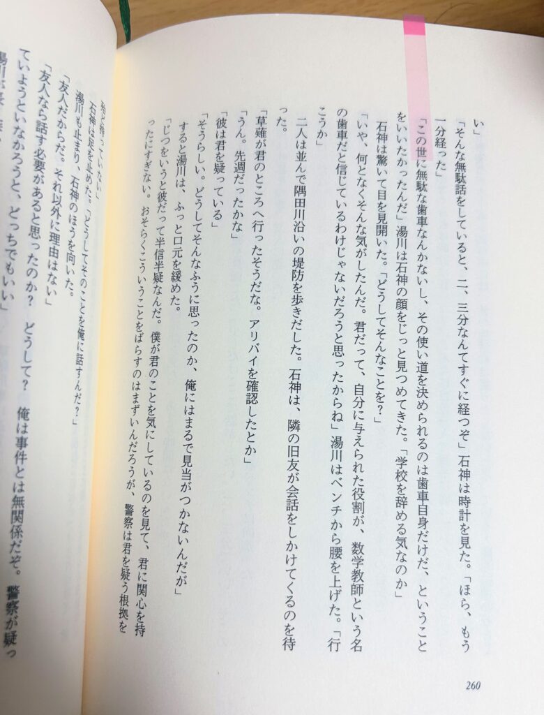 石神の犯行動機がどれだけ純粋で綺麗でも、湯川学の言葉通り、「この世に無駄な歯車なんかないし、その使い道を決められるのは歯車自身だけ」であることは、忘れてはいけない。
