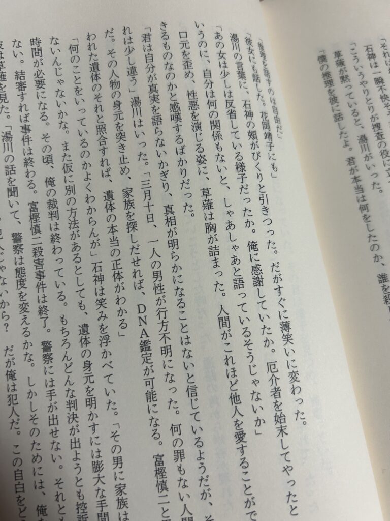 ただ、ミステリーをあんまり読んだことがない身としては結末のトリックよりも犯人の動機というのか、行動原理がとても良かった。