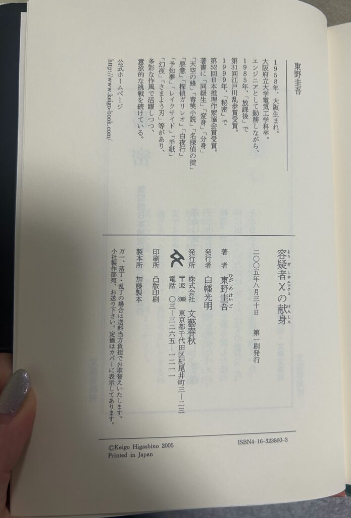 今回読んだ『容疑者Xの献身』は、親の本棚から発掘したものです笑